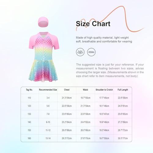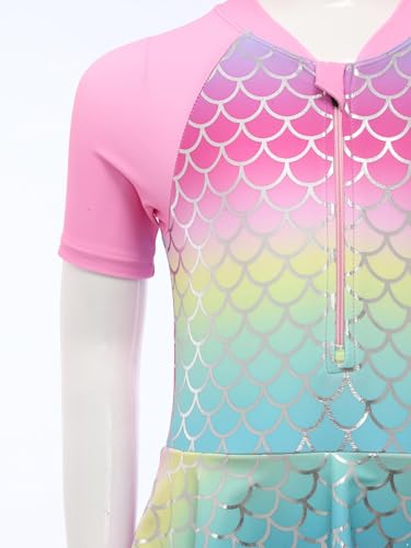 Girls Mermaid Swimsuits Shiny Fishscales Printed One Piece Rash Guard with Swim Cap 6