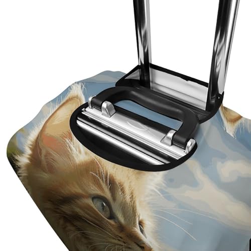 Cat Sitting in Green Field Luggage Cover, Washable Elastic Suitcase Cover Protector Fit 18-32 Inch Luggage 6