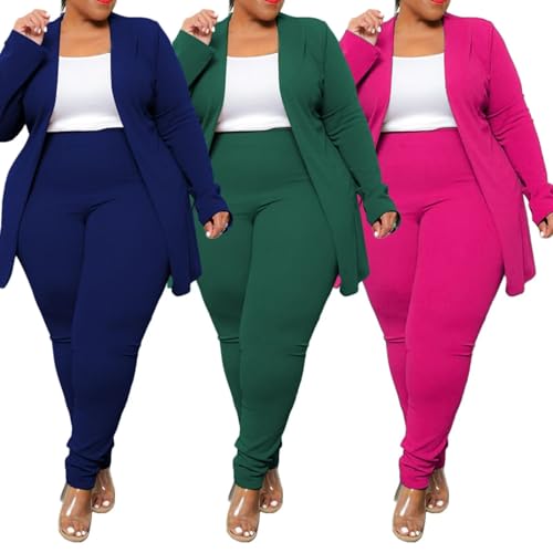 • FEATURES: Great plus size blazers with pants features Laper Collar, Turn-down Collar, Open Front, V-neckline, Long Sleeve, Pencil Long Pants, Great Stretchy suits. The pants is in ankle length. Slim fit style, a great suits sets for your choice!