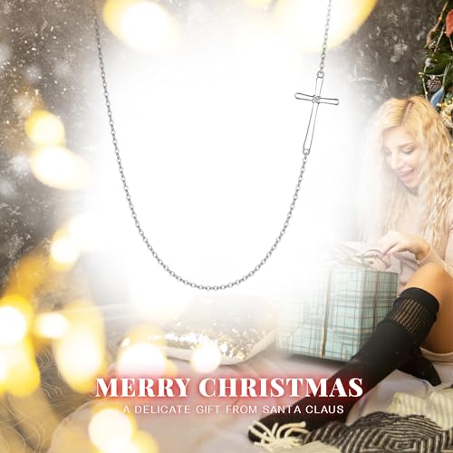 EleQueen 925 Sterling Silver Sideways Cross Pendant Choker Necklace Christian Jewelry Gifts for Mother Women Girls (Sideways Cross Necklace), Valentine's Day/Mother's Day/Christmas Jewelry Gift for Wife/Mom 4