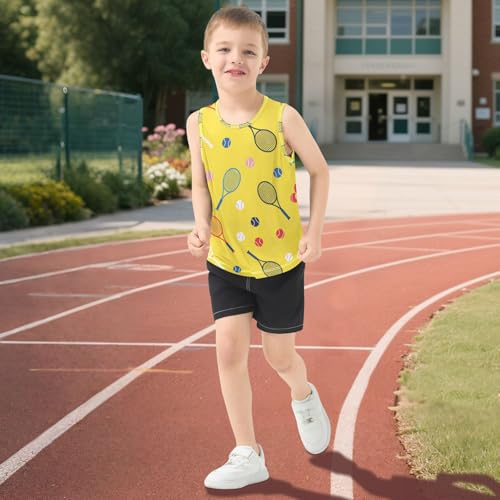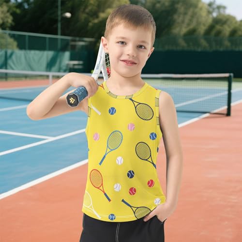 J JOYSAY Colorful Tennis Racket Boys Tank Top Sleeveless Muscle Shirts Quick Dry Active Sport Workout Kids T-Shirts 3-15T 3