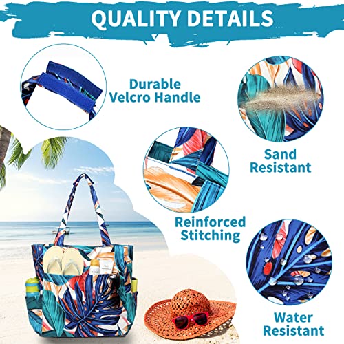 • HIGH CAPACITY & ORGANIZED - This pool bag is your best choice if you are an enthusiast of organizing items or multi pockets! Each beach tote is equipped with a large main compartment and 8 different pockets: 2 inner slip pockets, 1 inner zipper pocket, 2 outer open pockets, 2 elastic side pockets and 1 zipper back pocket. Pack your towels and sunscreen, enjoy your seaside trip!