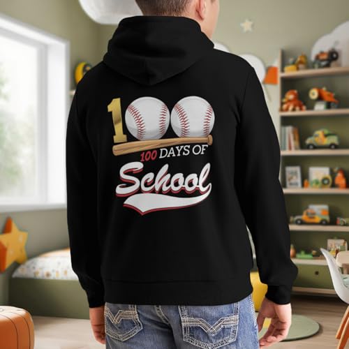 More information about Kids 100 Days Of School Sports Game Baseball Player Student Boys Girls Lightweight Kangaroo Pocket Fleece Hoodies