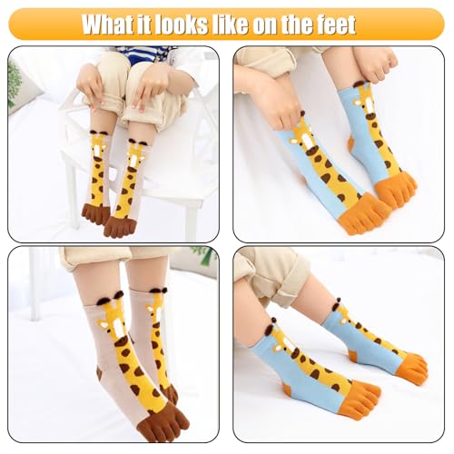5 Pairs Kids Five Toe Socks, Soft Breathable Giraffe Pattern Cotton Toe-Separated Socks for 3-12 Years 4
