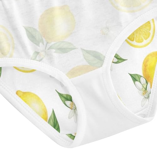 Watercolor Yellow Lemons White Girls Underwear Toddler 2t Cotton Panties for Girl Florals Kids Undies Briefs 4