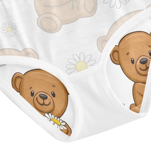 Cotton Toddler Girls Underwear Cute Brown Teddy Bears White Panties for Girl Fun Kids Undies Briefs 2t 5
