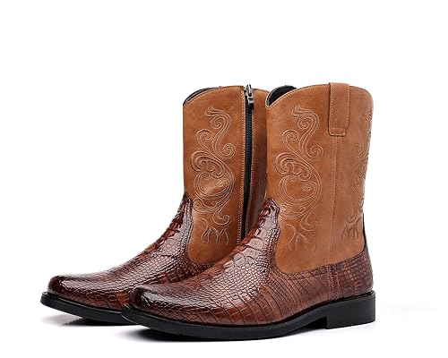 Santimon Men's Crocodile Western Cowboy Boots, Side Zipper, Mid Calf Wide Square Toe Boots 4